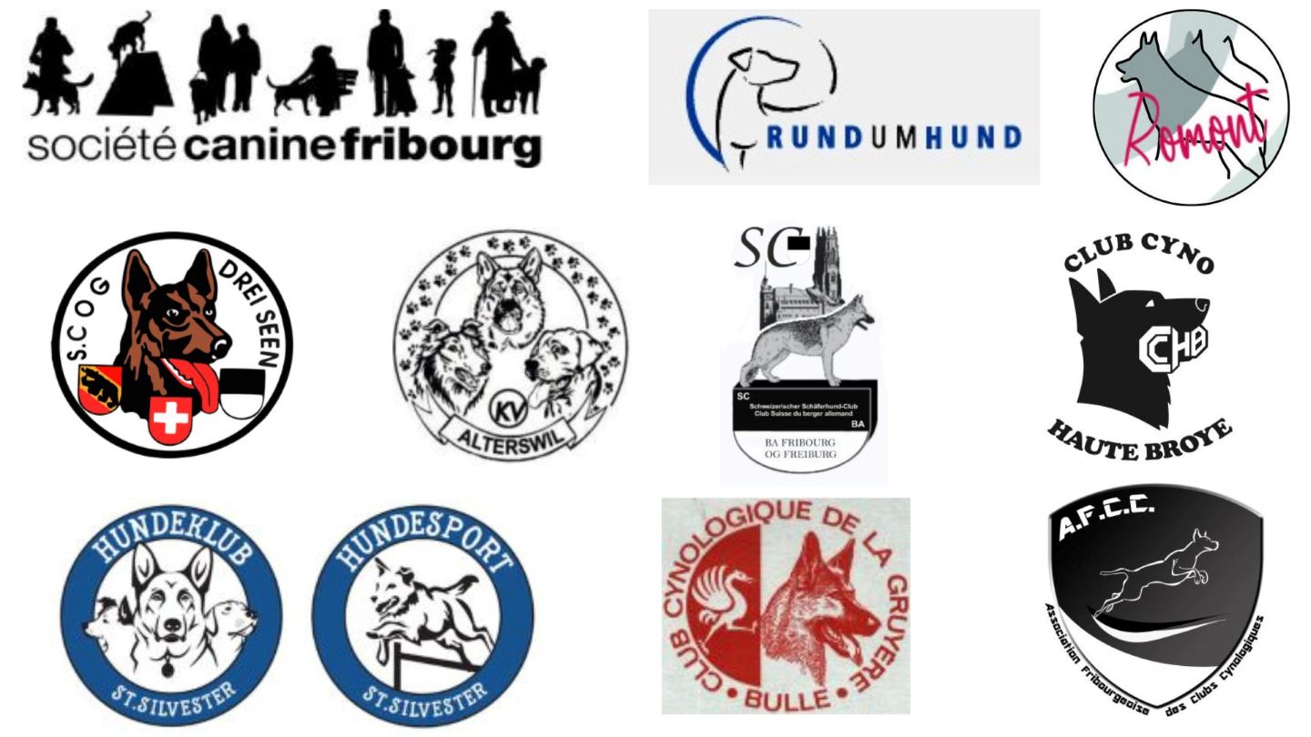 SC OG Drei Seen, Hundesport St. Silvester, Société canine de Fribourg, Société canine de Romont, GL-BA Fribourg, Cynogruyère, KV Alterswil und Umgebung, CCHB Club Cyno Haute Broye, HS Moos, zusammengeschlossen in der AFCC.