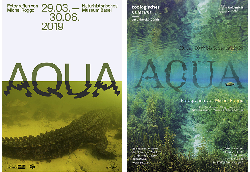 Die Ausstellung «AQUA - michel.roggo.photographie», die vom 10. Juni 2017 bis 28. Januar 2018 im Naturhistorischen Museum Freiburg gezeigt wurde, präsentierte nicht weniger als 900 Bilder von 40 verschiedenen Süsswassergewässern aus aller Welt, die der international bekannte Freiburger Fotograf Michel Roggo machte .