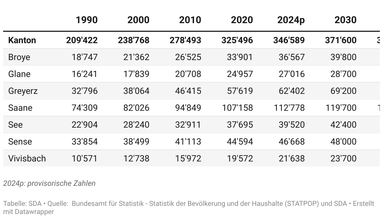 Mittleres Szenario des Amts für Statistik und Daten des Kantons Freiburg.
