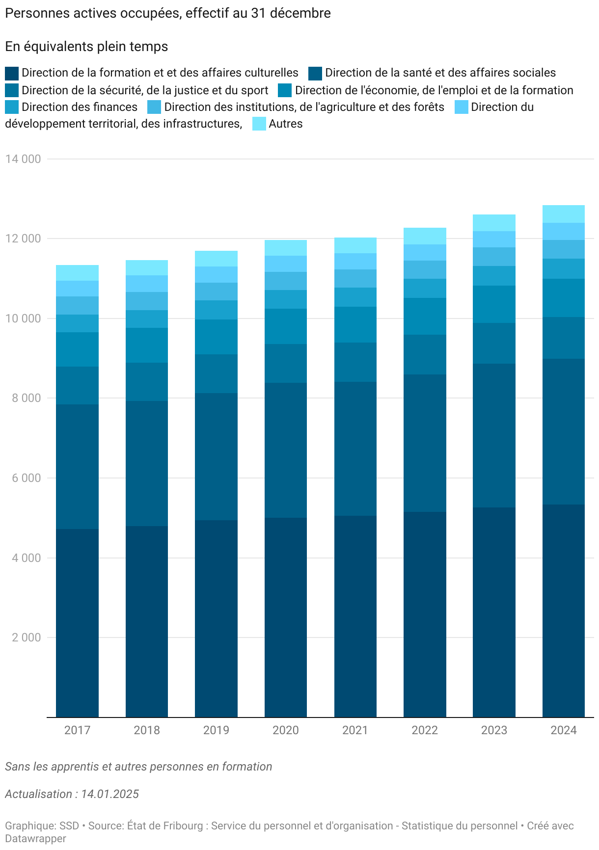 Personnel de l'État de Fribourg, par direction, de 2017 à 2024