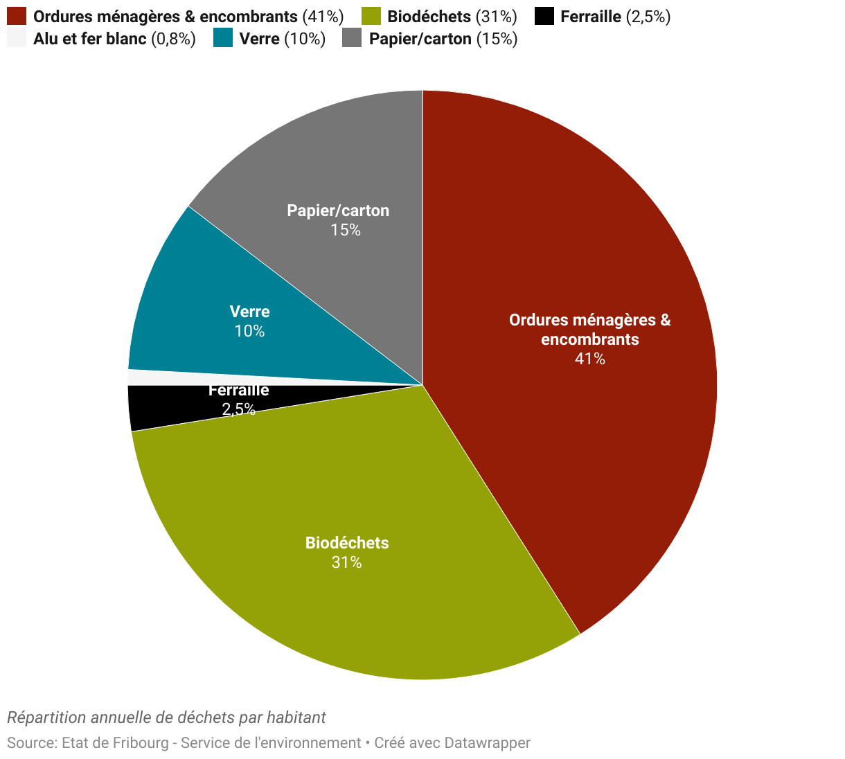 En 2024, chaque habitant du canton de Fribourg a produit en moyenne 377 kg de déchets urbains contre 372 kg en 2002.