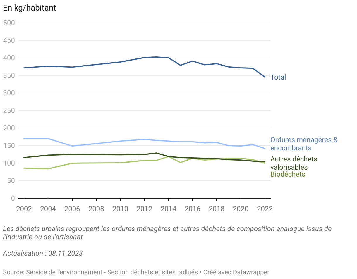 Déchets urbains dans le canton de Fribourg, de 2002 à 2022