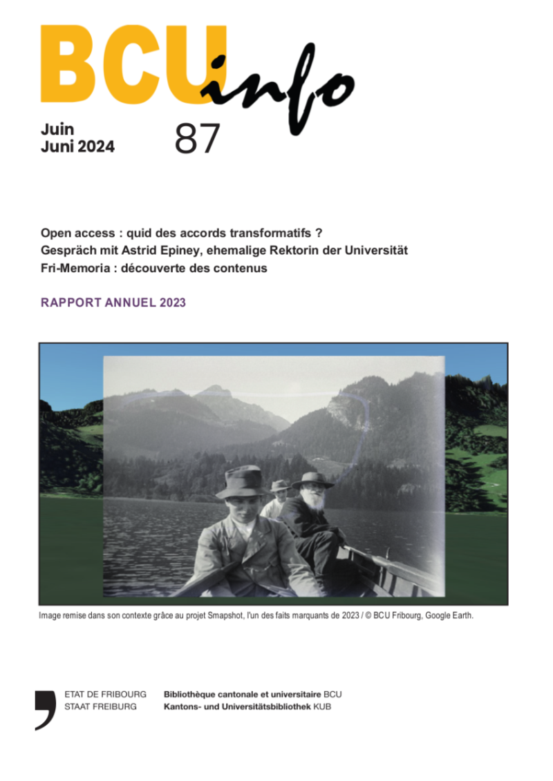 Ce numéro de BCU Info est notamment l’occasion de présenter le contenu de la jeune plateforme Fri-Memoria : toute l’ampleur du patrimoine conservé à la BCU y est exposée. L’Open Access et le projet Èvokâ y sont aussi évoqués, tout comme le passage de témoin au niveau du Rectorat de l’Université.