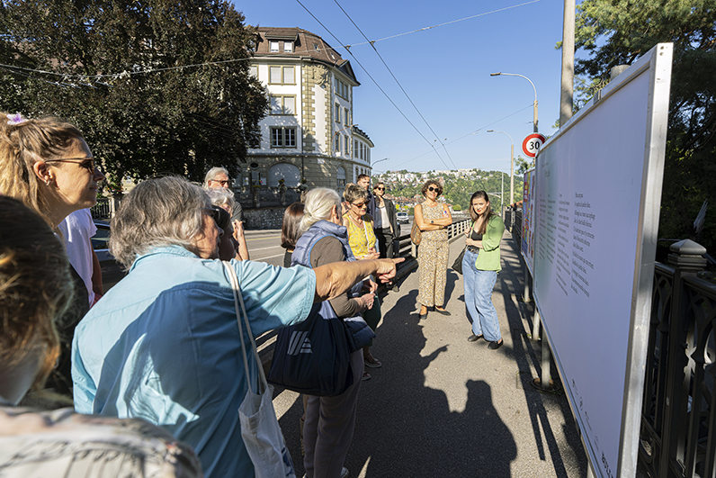 La mise en page des textes sur les panneaux urbains a été confiée à Cécile Chuard, apprentie médiamaticienne à la Bibliothèque cantonale et universitaire de Fribourg. L'occasion pour elle d'affiner ses compétences et de réaliser un projet d'ampleur en dehors de son champ d'action habituel.