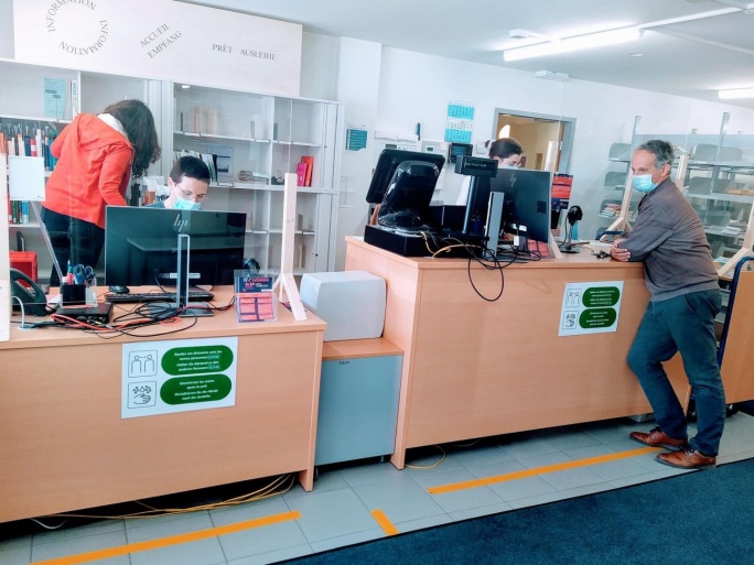 Le service au public, l’emprunt des documents, les places de travail et la consultation des documents patrimoniaux : tout cela se situe aujourd’hui et pour une période de 5 ans à la « BCU-Beauregard », à la rue de la Carrière 22 à Fribourg, à 5 minutes à pied juste au-dessus de la gare. C’est ici également que l’équipe du Service au public œuvre au quotidien, tout comme l’équipe des collections précieuses, patrimoniales et fribourgeoises.