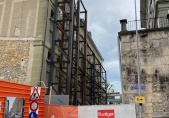 La Rue Saint-Michel qui avait été bouclée temporairement a été réouverte à la circulation le 25 juin pour les piétons et les vélos. Auparavant, un portique a été construit sur la rue pour soutenir une grue qui campera ici, le temps des travaux, et qui permet le passage en-dessous de cette dernière en toute sécurité.