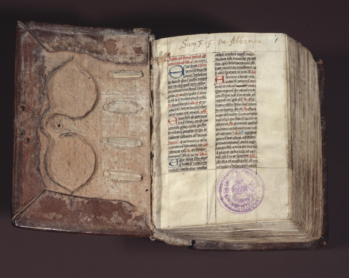 Le manuscrit Ms. L 64 de la BCU Fribourg se présente comme un bréviaire cistercien de format modeste, rédigé dans une écriture particulièrement petite. Le fait que la face intérieure du contreplat ait été évidée pour pouvoir y ranger des bésicles font de ce manuscrit un document unique, lié à la thématique de la lumière et de l’optique de l’exposition américaine.