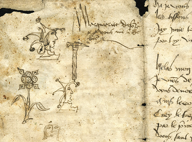 C’est en 1920 que Paul Aebischer découvrit de manière fortuite plusieurs dizaines de fragments de pièces de théâtre. Alors qu’il cherchait de la documentation pour sa thèse de doctorat sur les origines et la formation des noms de famille fribourgeois, il consulta un registre de reconnaissances foncières (appelé terrier ou « grosse ») de Saint-Aubin, datant de 1522, dont la reliure en carton allait offrir une incroyable surprise : elle était constituée de plusieurs papiers et imprimés, rédigés en caractères gothiques, datant des 15e et 16e siècles. Paul Aebischer venait de mettre la main sur de rares « pièces comiques vaudoises », rassemblées autrefois pour servir de couverture à un terrier fribourgeois. Le fonds d’archives « Littérature Paul Aebischer » était né (aujourd’hui nommé « AEF, Littérature »).Cent ans plus tard, une équipe de chercheuses de l’Université de Lausanne, Estelle Doudet et Natalia Wawrzyniak, a lancé un projet de recherche consacré aux « premiers théâtres romands ». Le but était de documenter l’évolution des pratiques théâtrales dans la Suisse romande actuelle entre les 15e et 16e siècles. À cette occasion, les pièces autrefois découvertes par Paul Aebischer ont fait l’objet d’un réexamen et ont été réétudiées. Ce travail a permis de compléter et parfois corriger les informations relatives à ces documents exceptionnels.