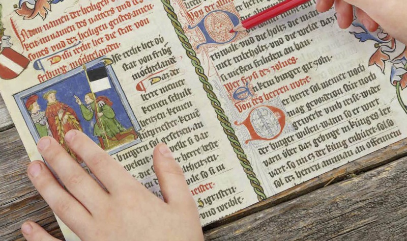 Cette année, l’UNIFR fut l’invitée des AEF. Les deux institutions ont ainsi collaboré pour proposer une thématique passionnante, sur la base d’archives fribourgeoises : « Lire et écrire au Moyen Âge, avec parchemin, encre et sceau ».