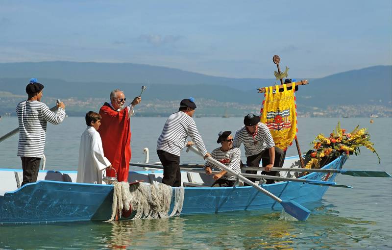 Le 10 août 1956, la Noble Confrérie des Pêcheurs a été reconstituée suite à la découverte, lors de travaux dans l’église d’Estavayer, d’une bannière sur laquelle Saint-Nicolas, patron des pêcheurs, et Saint-Laurent, patron de la paroisse, sont représentés côte à côte. A la suite de cette trouvaille, le curé de la paroisse, l’abbé François-Xavier Brodard encouragea les pêcheurs et quelques personnalités d’Estavayer à faire revivre cette ancienne confrérie. Un acte officiel atteste qu’elle existait en 1658 et une abbaye des pêcheurs aurait existé à Estavayer au XVIe siècle déjà (Vauthier, Jeanneret).