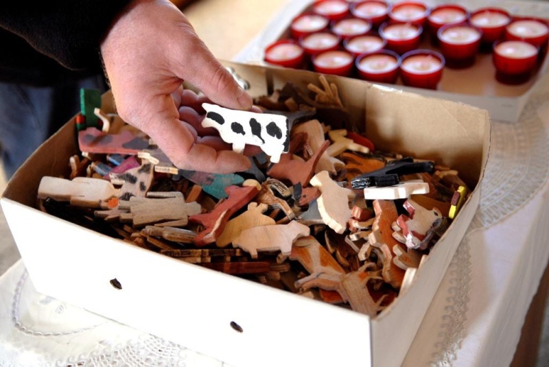 Les figurines humaines et animales intégrées à la célébration aujourd'hui en parallèle à l'offrande du fromage et du jambon ne sont en revanche pas attestées par les écrits. La tradition orale fait remonter leur usage au XIXe siècle.