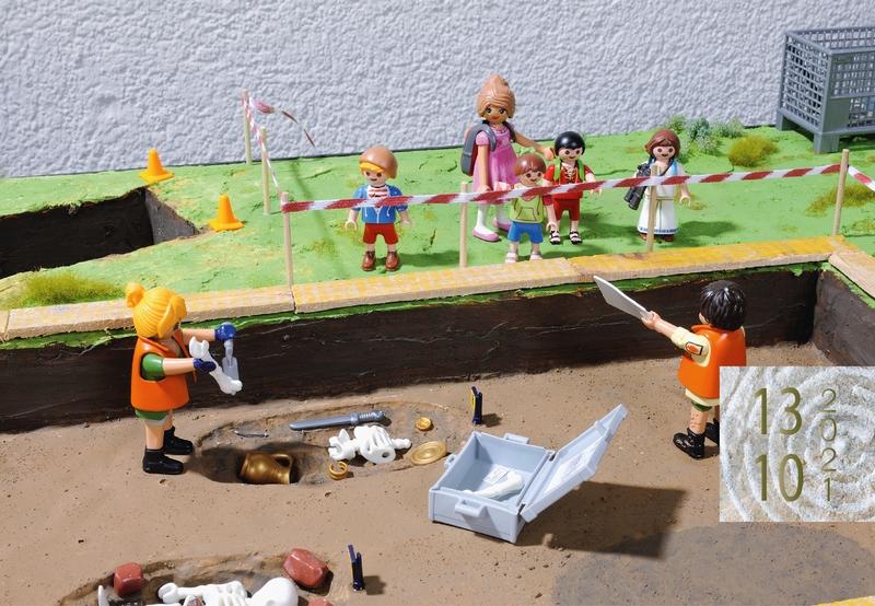 Depuis cet automne, le Service archéologique propose un nouveau concept de présentation de ses activités aux classes de 5H à 9H du canton. À travers plusieurs ateliers interactifs, les élèves se familiarisent avec le travail des archéologues, du chantier de fouille aux laboratoires de conservation-restauration. Lors de leur visite dans les locaux du Service (durée: 1h30 env., les mardis ou jeudis), ils découvrent, entre autres, la maquette d’une fouille archéologique réalisée avec des figurines Playmobil, puis, comme un céramologue, placent des récipients en céramique de différentes époques sur une ligne du temps, avant un passage dans l’atelier où sont restaurés les objets.