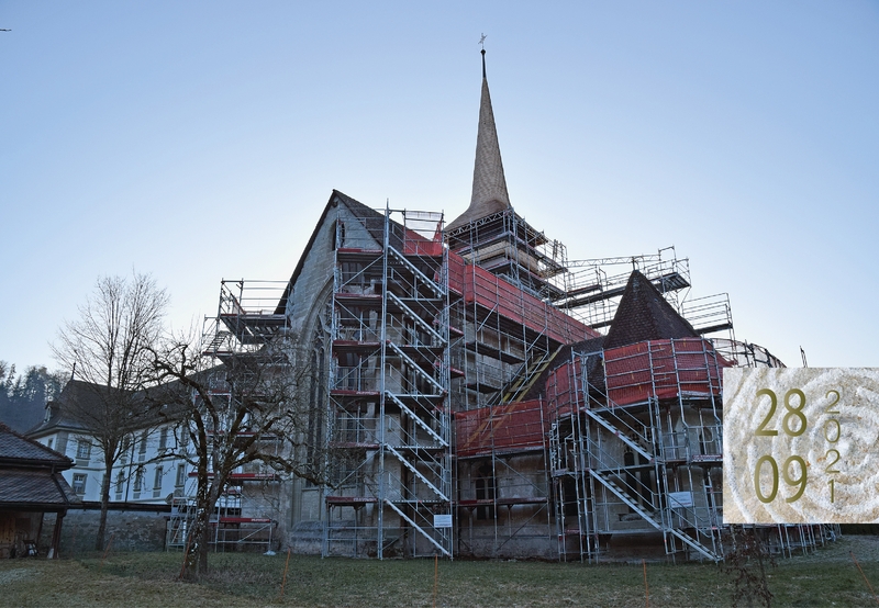 Depuis la fin de l’été, maîtres d’œuvres et spécialistes ont collaboré à Hauterive dans le cadre du projet de restauration et d’assainissement de l’église abbatiale. Les interventions ont été multiples, mais une priorité a été accordée aux réparations des façades et de la toiture, permettant une observation détaillée des élévations. À l’intérieur, la pose d’un futur chauffage au sol a exigé une opération délicate de dépose d’autels et de démontage des stalles de la fin du XVe siècle, pièces maîtresses du mobilier religieux du site.