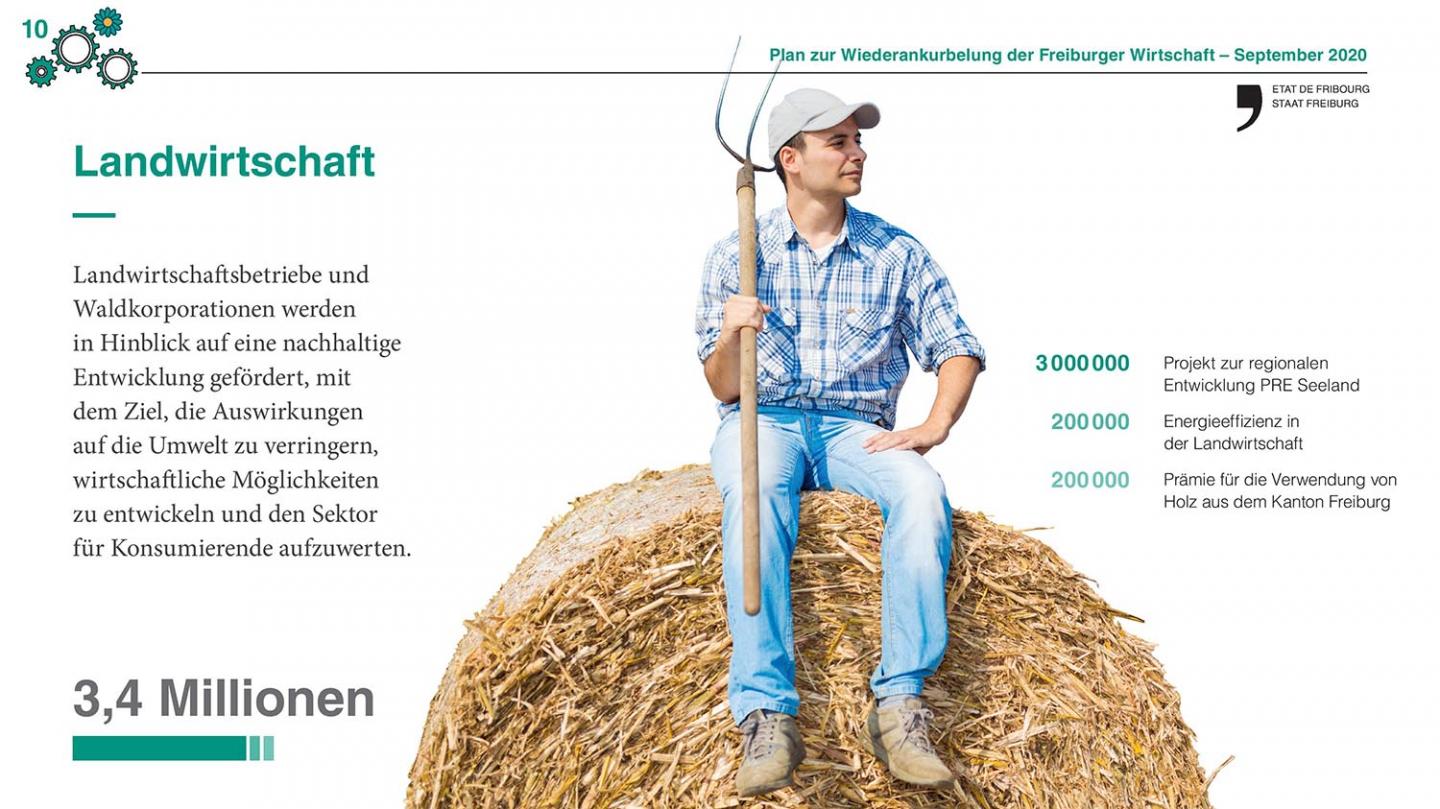 - Beschreibung der Massnahme: Das RF Seeland ist ein regionales Entwicklungsprojekt im Sinne des Bundesgesetzes über die Landwirtschaft (LWG). Es sieht vor, die Wettbewerbsfähigkeit der Landwirtschaft zu stärken und einen Mehrwert in der Region zu schaffen. Das «PRE-Projekt Bio Gemüse Seeland», das hauptsächlich von den Landwirten der Region getragen wird, hat zum Ziel, einen Mehrwert für den Bio-Gemüsesektor im Seeland zu schaffen. Es zielt auch darauf ab, die Nachhaltigkeit, den Tourismus und die beruflichen Fähigkeiten zu entwickeln. Die drei Schlüsselwörter des Projekts sind «Gemüse», «Bio» und «Seeland». Das Projekt besteht aus mehreren Teilprojekten, nämlich dem Bau und Ausbau von Gebäuden für die Terraviva AG und Seeland Bio. Zusätzlich zu diesen Infrastruktur-Investitionsprojekten umfasst das Projekt Teilprojekte für Koordination, allgemeines Marketing, eine B2B-Verkaufsplattform und eine Innovationsplattform. Das Teilprojekt «Bio-Gemüse-Tourismus» von Murten Tourismus hat zum Ziel, die Region und die Freiburger Gemüseproduktion durch touristische Aktivitäten auf den Bio-Gemüsebetrieben der Region bekannter zu machen. Die Massnahme sieht daher vor, einen Teil der Erstinvestitionen über den Wiederankurbelungsplan zu finanzieren. Für das gesamte Projekt ist ein Beitrag des Kantons von etwa 8 Millionen Franken vorgesehen.