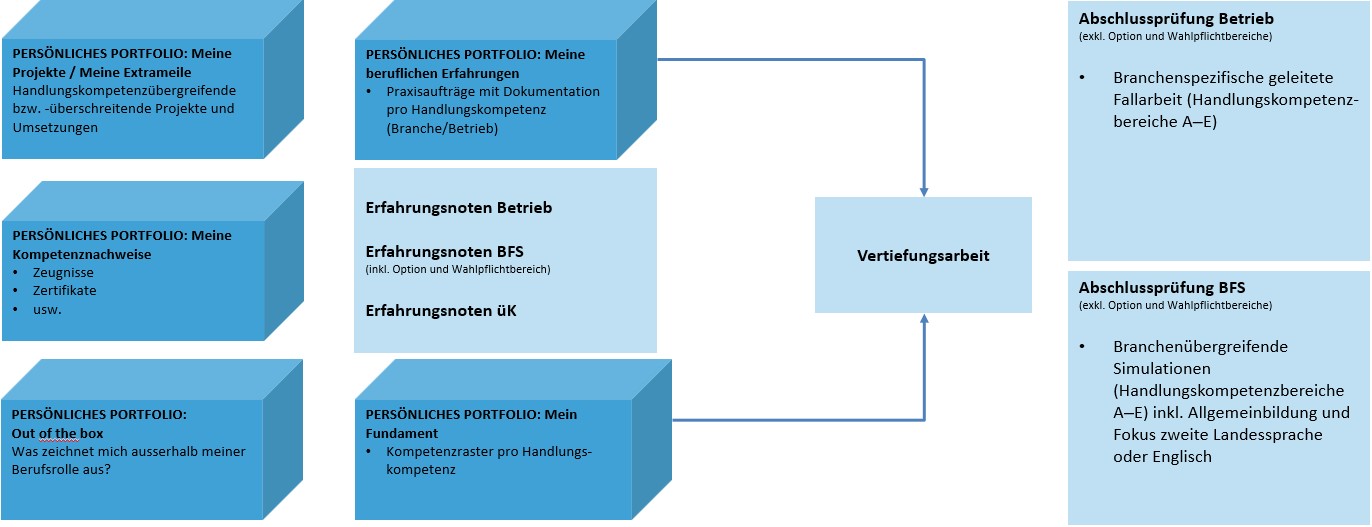 Gestützt auf das persönliche Portfolio, das die Lernenden während ihrer ganzen Ausbildung führen, verfassen die Lernenden zudem eine Vertiefungsarbeit.