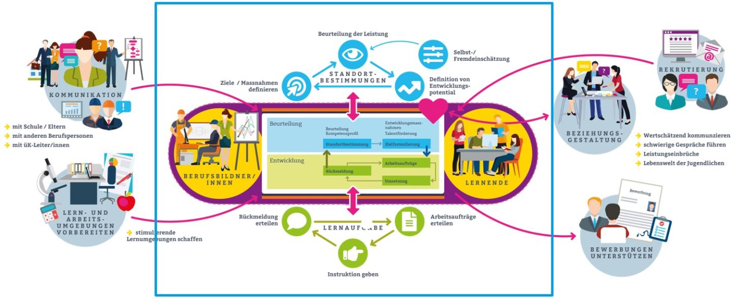 - Als Coach unterstützen sie die Lernenden im Lernprozess, und zwar an den drei Ausbildungsorten (Berufsfachschule, überbetriebliche Kurse und Betrieb).