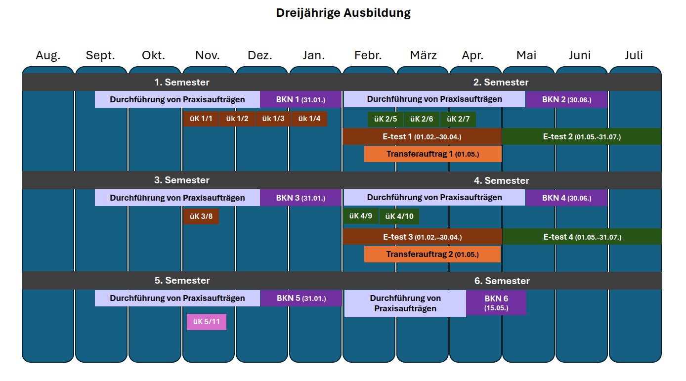 - Der sechste betriebliche Kompetenznachweis erfolgt bis spätestens 15. Mai des letzten Semesters.