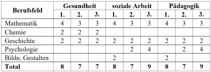 Die Stundenpläne zweier Klassen (eine deutschsprachige und eine französischsprachige) der gleichen Stufe und des gleichen Berufsfelds werden bezüglich der sogenannten «zweisprachigen» Fächer aufeinander abgestimmt.