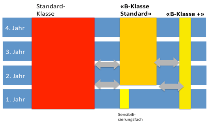Dank den Differenzierungsmassnahmen können die Bedürfnisse der verschiedenen Zielgruppen besser abgedeckt werden. Darüber hinaus wird durch eine grosse Durchlässigkeit zwischen den einzelnen Ausbildungswegen der individuellen Entwicklung der einzelnen Schülerinnen und Schüler Rechnung getragen.