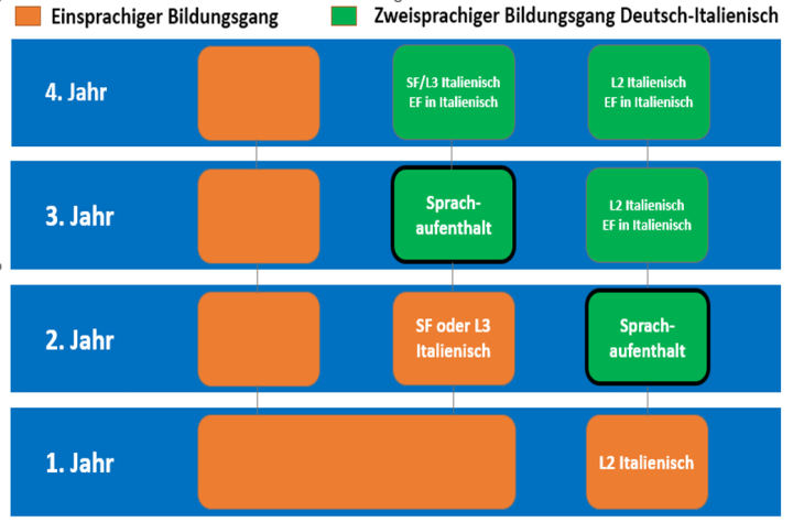 Die zweisprachige Ausbildung «Deutsch-Italienisch» richtet sich an Schülerinnen und Schüler, die am Gymnasium Italienisch lernen.