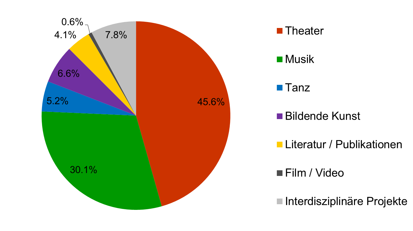 Die im Jahr 2018 gewährten Finanzhilfen wurden wie folgt auf die verschiedenen künstlerischen Ausdrucksformen aufgeteilt: