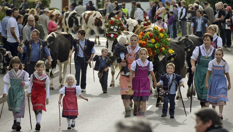 Die Zahl der festlichen Alpabzüge nahm seit 1980 im Kanton Freiburg, im Wallis, in den Waadtländer Alpen und im Jura zu. Prominente Persönlichkeiten und Sonderveranstaltungen treten in Konkurrenz zu Kühen und Sennen…