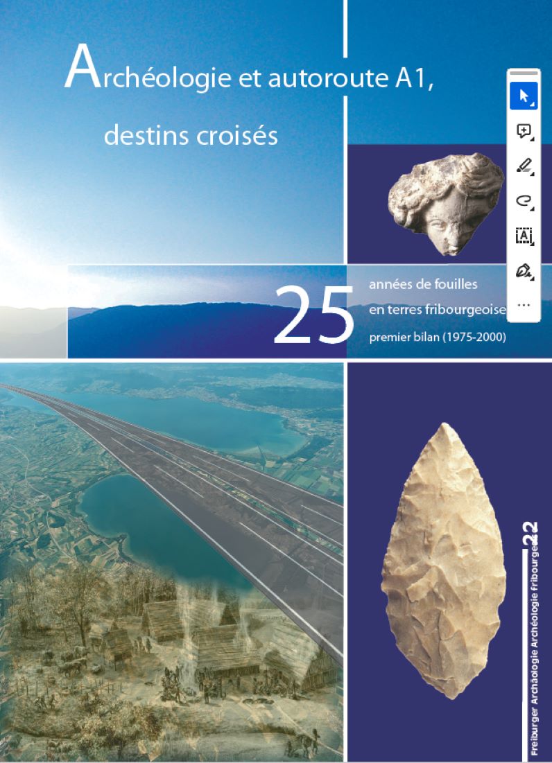 Titel : Archéologie et autoroute A1, destins croisés. 25 années de fouilles en terres fribourgeoises, premier bilan (1975-2000)