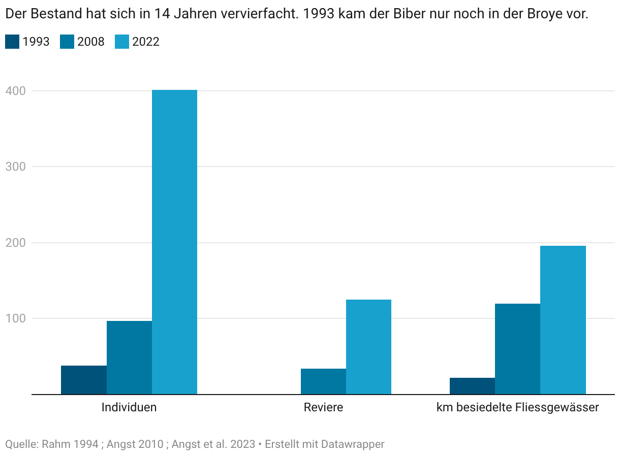 Quelle der Kennzahlen : Der Biber - ein wirkungsvoller Partner für lebendige Gewässer, BAFU 2025