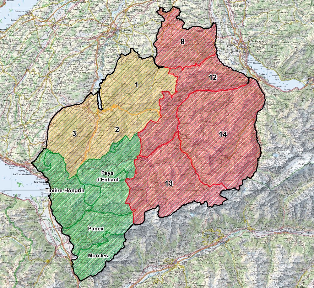 Um die Bestandsentwicklung zu verfolgen, werden die Hirsche alljährlich in Zusammenarbeit mit den Kantonen Bern und Waadt in der Region "überkantonaler Perimeter" (siehe Karte) gezählt.