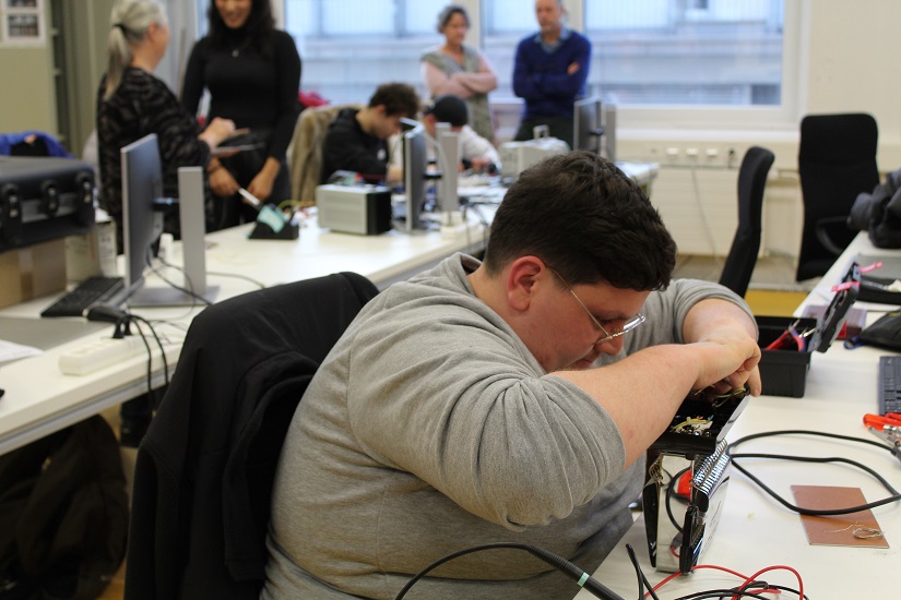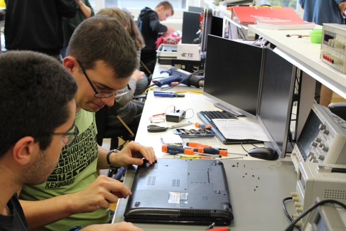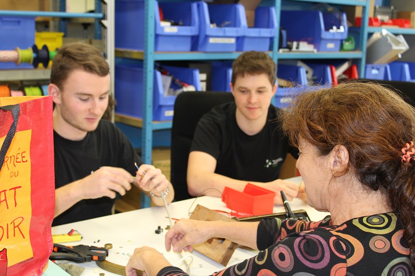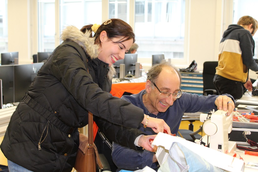 «2015 waren wir zum ersten Mal, als einfacher Partner und auf Anfrage der Freiburger Sektion der Fédération romande des consommateurs, an einem Repair Café beteiligt. Dieses fand in der Ancienne Gare statt», blickt Estelle Leyrolles, Direktorin der EMF, zurück. Die Schule brachte die Dinge dann auf die nächste Stufe, indem sie ein eigenes Café organisierte und ihre Truppen mobilisierte. Im November nahmen 35 Lernende in Elektronik, Automatik und Polymechanik an den Reparaturwerkstätten teil, um ihre technischen Fähigkeiten mit denjenigen zu teilen, die Reparaturen durchführen wollten. Zehn weitere Personen – Angestellte lokaler Unternehmen und Personen im Ruhestand – waren ebenfalls anwesend, um den Besucherinnen und Besuchern in Sachen Informatik oder beim Upcyclen von Kleidern zu helfen. «Die Lernenden, Lehrpersonen und Mitglieder der Direktion sind alle freiwillig dabei», ergänzt die Direktorin der EMF. Alle machen mit grosser Freude mit. Die Atmosphäre vor Ort ist ausgezeichnet. Das Repair Café ist nämlich nicht nur nützlich, um das Wegwerfen von Dingen zu vermeiden, sondern ermöglicht auch einen fruchtbaren Gedankenaustausch, unter anderem über Ökologie, zwischen jungen Menschen in Ausbildung und den anderen Personen, die zum Treffen kommen.