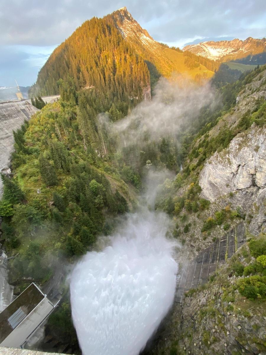 - Geschiebedefizit: Die Sedimente und der Kies, die sich am Grund der Staubecken absetzen, fehlen unterhalb der Staudämme und Wehre, wo sie normalerweise als Substrat für Laichplätze und als Erosionsschutz dienen. Diese Thematik fällt in den Zuständigkeitsbereich des Amts für Umwelt (AfU), Sektion Seen und Wasserläufe.