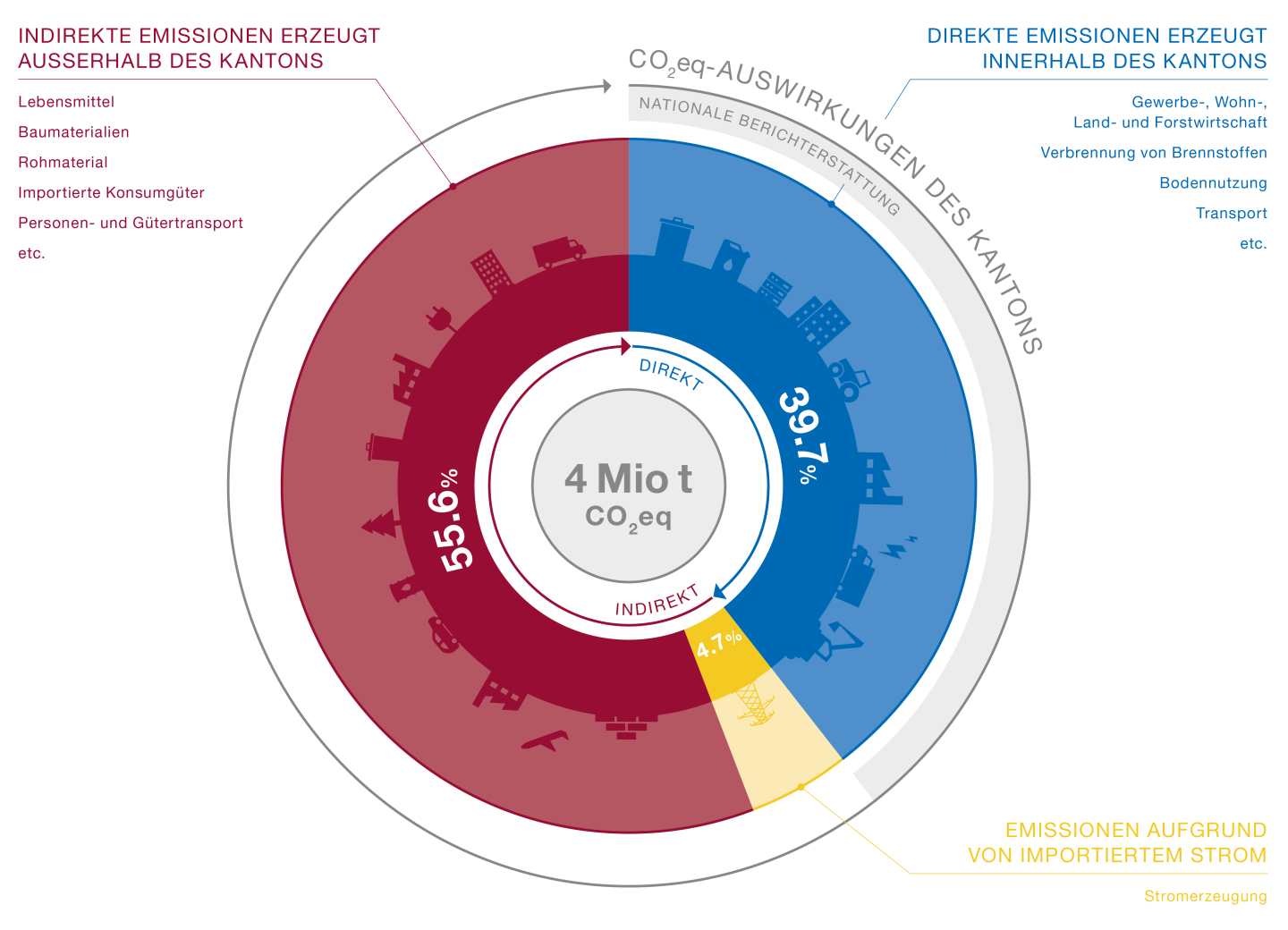 Die direkten Emissionen stellen rund 40 % der Gesamtemissionen des Kantons dar.