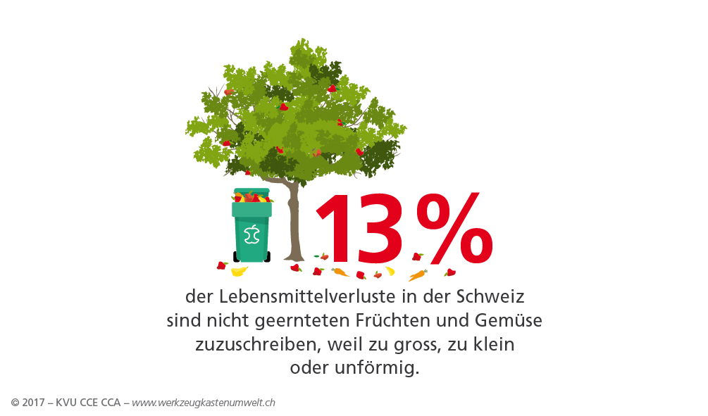 Wenn wir passende Mengen kaufen, angemessene Portionen kochen und Reste verwerten, verringern wir die Umweltbelastung infolge Lebensmittelverschwendung. In der Schweiz bestehen 30% der Haushaltsabfälle aus Lebensmittelabfällen.