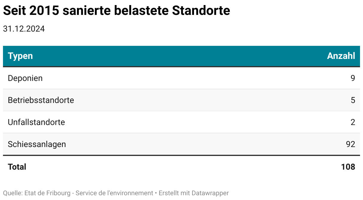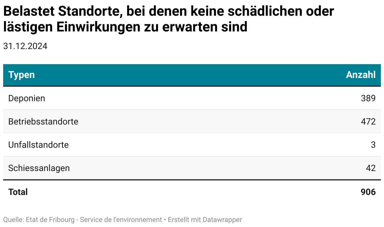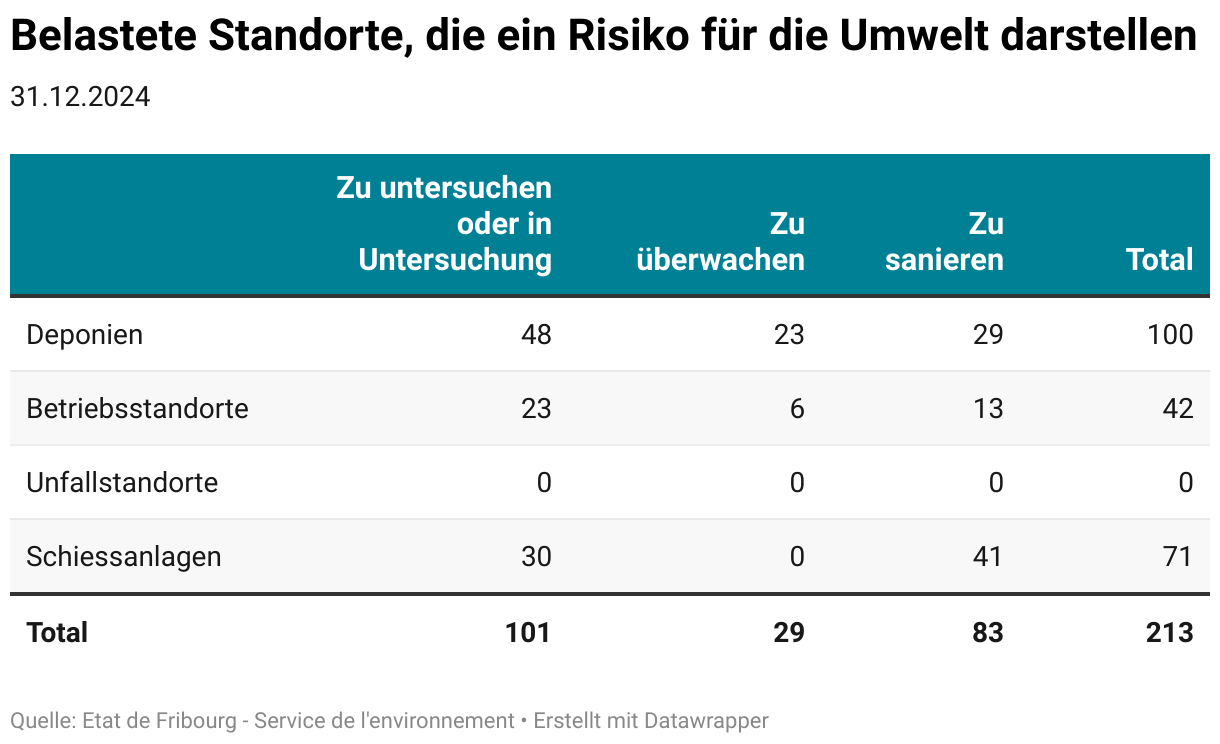 Der Kanton führt ein Kataster, in dem Standorte erfasst sind, an denen Schadstoffe verwendet, ausgeschüttet oder gelagert wurden (Ablagerungsstandorte von Abfällen, Betriebsstandorte, Unfallstandorte und Schiessanlagen). Untersuchungen werden durchgeführt, um Umweltschäden zu identifizieren, belastete Standorte zu sanieren oder längerfristige schädliche Einwirkungen zu verhindern. Ziel ist es, das Einbringen von Schadstoffen in das Grundwasser, in Oberflächengewässer, in den Boden und in die Luft zu unterbinden.