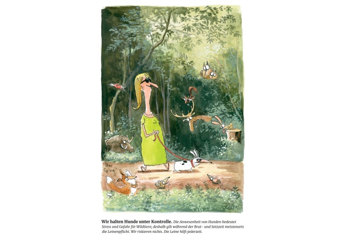 - Obligatorisch: Führen Sie Ihren Hund vom 1. April bis 15. Juli an der Leine (Geburt und Fütterung von jungen Wildtieren).