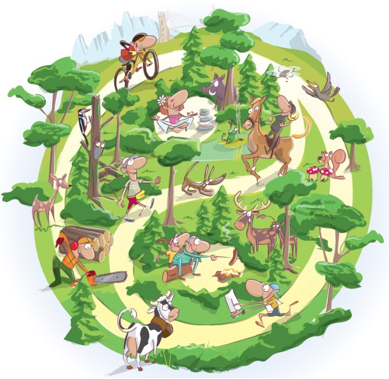 Immer mehr Menschen gehen in den Wald, um sich zu erholen, mit sehr unterschiedlichen Ansichten und Motivationen. Dies kann zu Konflikten führen, sei es zwischen den Spaziergängern und dem Ökosystem, zwischen verschiedenen Nutzergruppen oder zwischen den Spaziergängern und den Zielen und Interessen der Waldbesitzer und -bewirtschafter. Viele dieser Konflikte können durch einfache Verhaltensweisen entschärft werden.