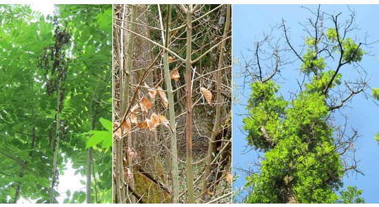 Es handelt sich um eine Krankheit der Eschen, die manchmal auch als Chalarose bezeichnet wird und deren Erreger ein aus Asien stammender Pilz ist: Hymenoscyphus fraxineus. Die Krankheit war 2008 in die Schweiz gelangt und ist heute im Kanton Freiburg weit verbreitet. Befallene Eschen weisen ein charakteristisches Aussehen auf (siehe dazu die Publikation der WSL ).