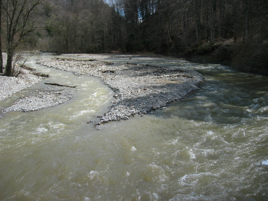 Die vom Amt für Umwelt beauftragten Fachleute haben verschiedene Tests während des künstlichen Hochwassers durchgeführt, um den Geschiebehaushalt zu verbessern.