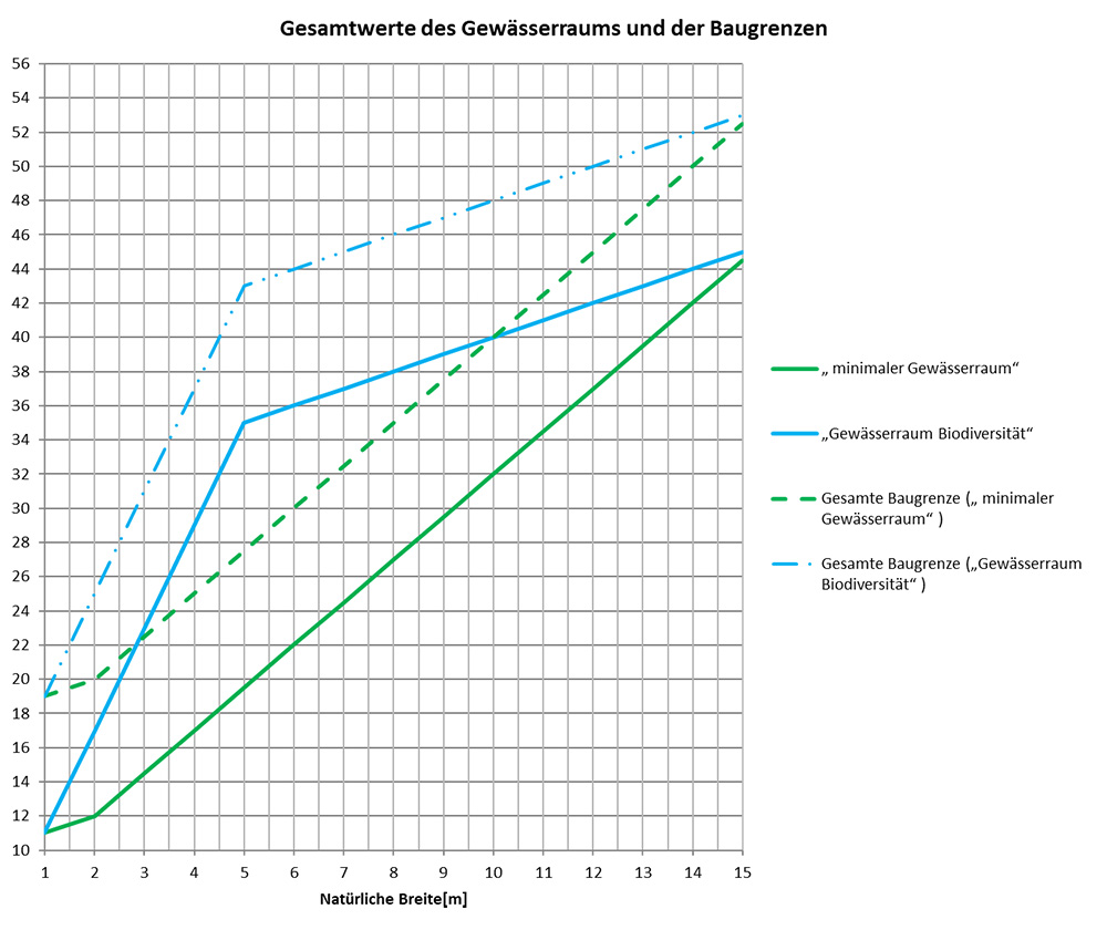 - GWR Biodiversität 23 m (11,5 m beidseits der Gewässerachse).