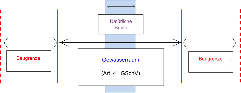Der Gewässerraum (GWR) ist in der Gewässerschutzverordnung des Bundes (Art. 41a und 41b GSchV ) festgelegt.