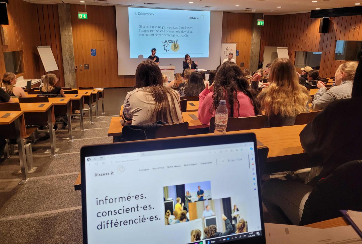 Am 13. Mai fand an der Berufsfachschule Soziales-Gesundheit (ESSG) ein diskussionsreicher Tag rund um die Krankenversicherungsprämien statt. An der Veranstaltung, die vom Verein Discuss it organisiert wurde, welcher politische Debatten in Schulen anbietet, nahmen über 140 Lernende aus verschiedenen Klassen und Freiburger Berufsfachschulen teil. Solche Debatten bieten eine dynamische Plattform für den Austausch zwischen Lernenden und Politikerinnen und Politikern und geben dem jungen Publikum die Möglichkeit, mit unterschiedlichen Meinungen zu einem Thema konfrontiert zu werden und diese mit Respekt vor den Visionen der anderen zu diskutieren.