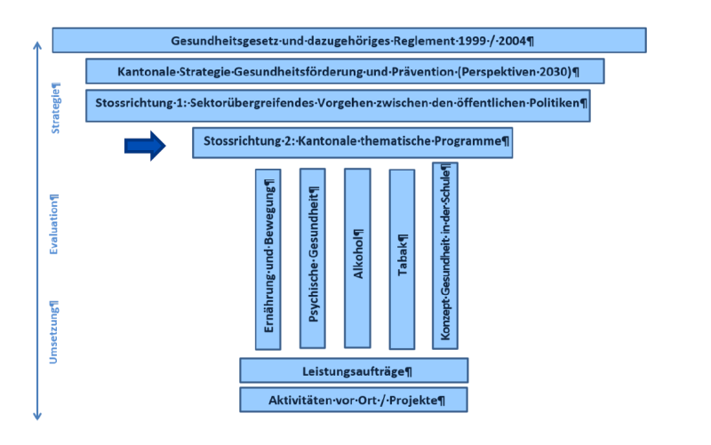 Die kantonalen Programme orientieren sich an den nationalen Vorgaben von Organisationen wie dem Bundesamt für Gesundheit, Gesundheitsförderung Schweiz und dem Tabakpräventionsfonds.