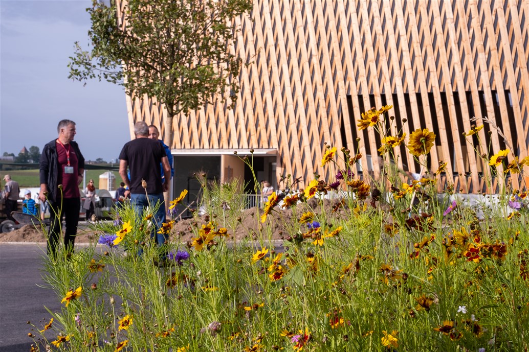 Am Ende der Veranstaltung sind alle Standbetreiber mit dem Ablauf des Wochenendes zufrieden, an dem von Freitag, dem 24. September, bis Sonntag, 26. September, gegen 10’000 Personen herbeigeströmt sind. Für die Berufsleute der Landwirtschaft war dies eine einzigartige Gelegenheit, der Öffentlichkeit, besonders vielen Familien, direkt zu begegnen. In Grangeneuve konnten sich die Besucherinnen und Besucher an Ständen über die Tiergesundheit informieren, dem Weg der Milch vom Feld bis auf den Teller folgen und entdecken, was es alles braucht, damit eine Kuh Milch produzieren kann. Die Jugendlichen konnten sich über die landwirtschaftlichen, gartenbaulichen oder forstwirtschaftlichen Ausbildungen genauso wie über die Berufe der Milchverarbeitung informieren. Die zahlreichen Unterhaltungsangebote waren sehr erfolgreich, zum Beispiel die Werkstatt «Rund ums Sauerkraut», das Atelier der Sinne oder die Riesen-Milchkanne und die kleinen Traktoren für die Kinder. Am Sonntagmittag nahmen über 320 Gäste am Kilbi-Menü teil. Am Freitag empfing Grangeneuve bereits mehr als 250 geladene Gäste, um den Kuhstall offiziell einzuweihen, darunter waren der Präsident des Staatsrats Jean-François Steiert und der Staatsrat Didier Castella. Anstatt ein rotes Band durchzuschneiden, wurde eine Sommerlinde gepflanzt. Zu diesem Anlass spielte die Landwehr, das offizielle Musikkorps des Staats und der Stadt Freiburg.