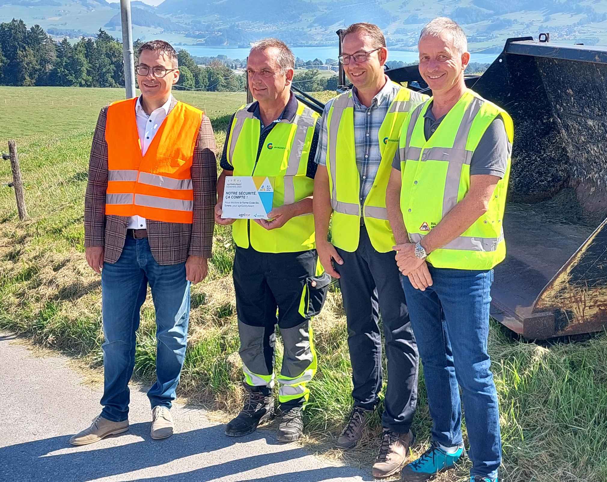 Im Rahmen einer Pressekonferenz, die heute am Standort Sorens stattfand, überreichte Herr Etienne Junod, Leiter der BUL Romandie, den agriSafetyAward an Herrn Jean-François Hayoz, Leiter des Bio-Schulbauernhofs Sorens. Die Herren Pascal Toffel, Direktor von Grangeneuve, und Laurent Guisolan, Verantwortlicher der Betriebe von Grangeneuve, waren ebenfalls bei der Zeremonie anwesend. Diese Auszeichnung stellt die Krönung einer mehrjährigen Teamarbeit dar und ist von grösster Bedeutung, da sie dazu beiträgt, das Image des Betriebs zu steigern.