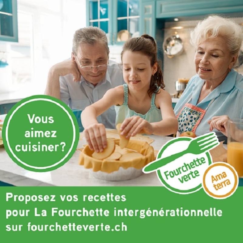 Um an diesem Projekt teilzunehmen, werden Teams von zwei bis drei Personen aus verschiedenen Generationen aufgefordert, ein ausgewogenes und nachhaltiges Rezept vorzuschlagen, das den Fourchette verte-Kriterien für eine ausgewogene Ernährung entspricht, wobei rohe, lokale und saisonale Zutaten, pflanzliche Eiweissquellen und ein Bezug zur Region (von hier oder anderswo) bevorzugt werden.