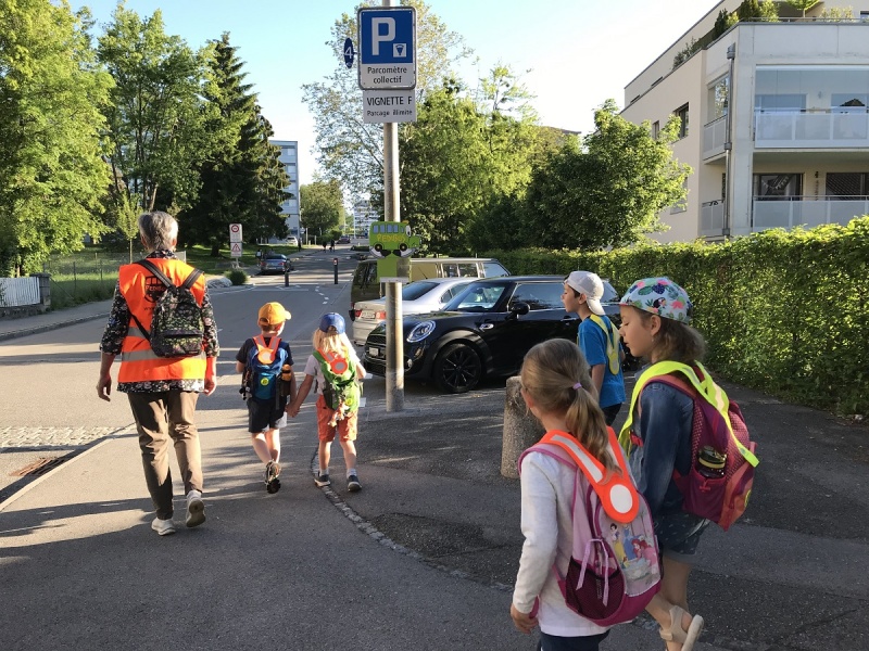 Die Freiwillige, selbst Grossmutter, ist nicht mit den Kindern verwandt, doch es bereitet ihr viel Freude, sie zur Schule zu begleiten. «Die Kinder freuen sich immer sehr, sich wiederzusehen, erzählen sich Geschichten und lachen zusammen. Deswegen konnte ich erst nach und nach eine Beziehung zu ihnen aufbauen, doch ich bin sehr froh über die Kontakte, die ich dank dem Pedibus in der Nachbarschaft knüpfen konnte. Sowohl für die Kinder als auch für mich hat ein neuer Lebensabschnitt begonnen: Für sie die Schule, für mich der Ruhestand!»