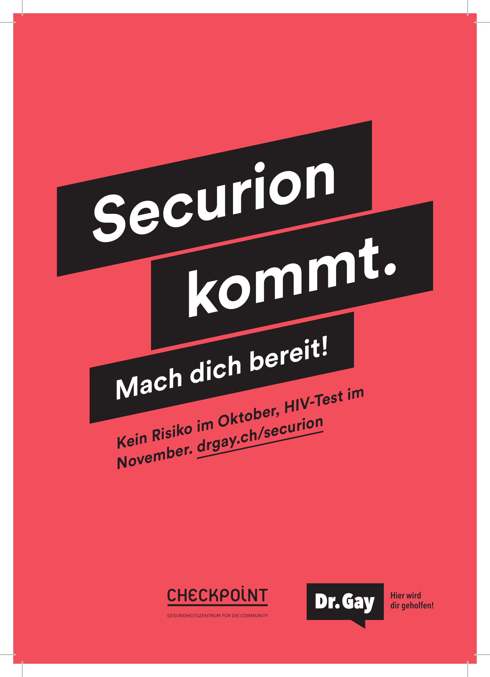 «Securion» ist eine nationale HIV-Test-Kampagne für Männer, die Sex mit Männern haben sowie Transmenschen, die sexuelle Kontakte zu Männern pflegen, die Sex mit Männern haben.