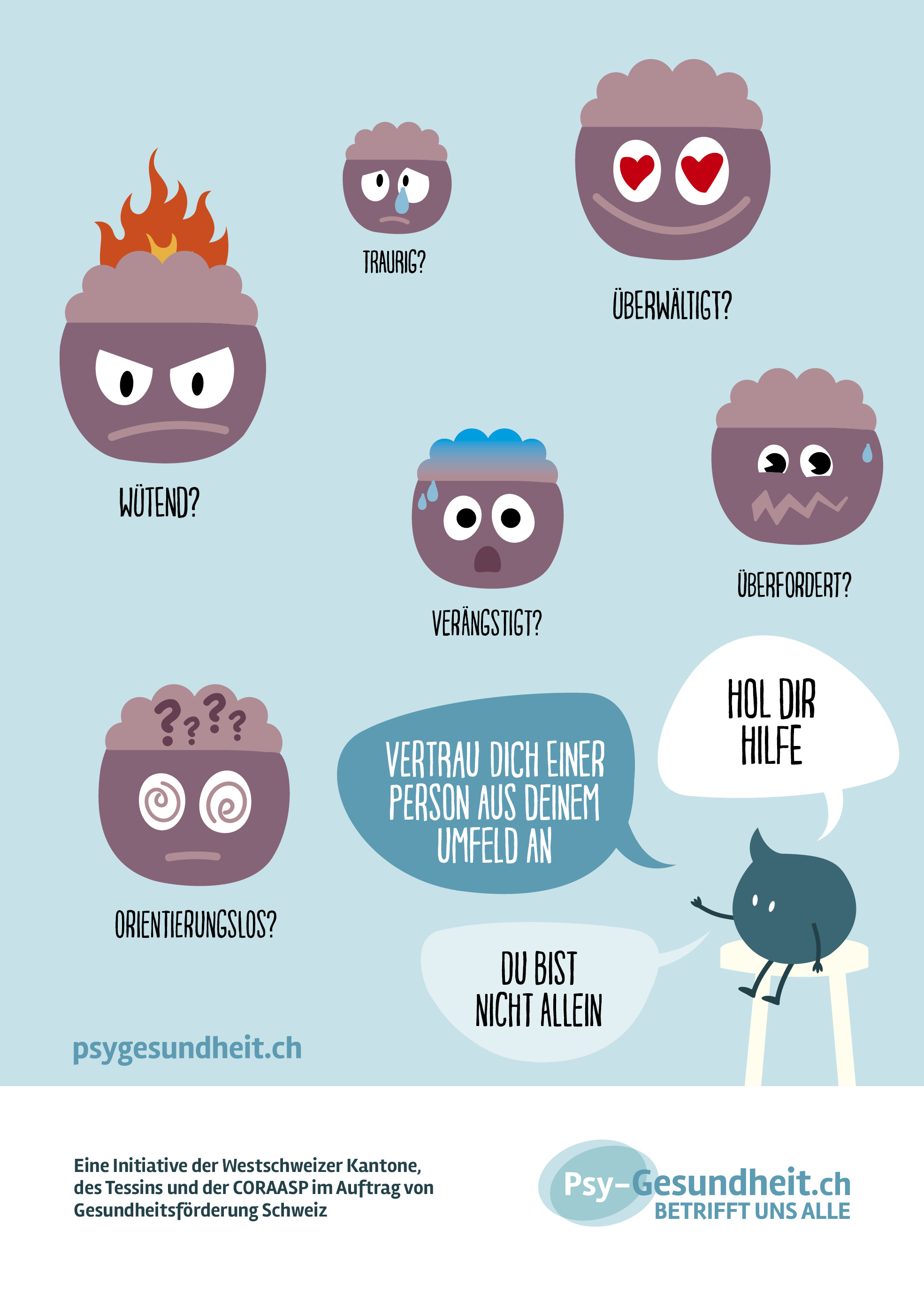 Schätzungen zufolge ist in der Schweiz jede/r Zweite in ihrem oder seinem Leben mindestens einmal punktuell oder dauerhaft von einer psychischen Störung betroffen. Psychische Gesundheit ist keinesfalls gegeben, sondern wird im gesamten Lebensverlauf auf die Probe gestellt, sowohl bei Erwachsenen als auch Jugendlichen.