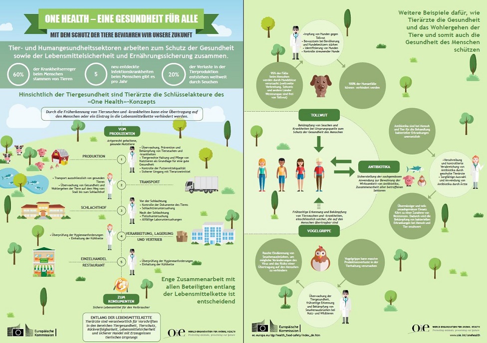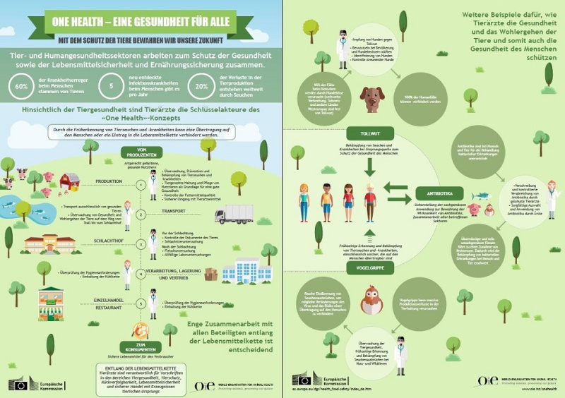 Die enge Zusammenarbeit zwischen der Veterinär- und Humanmedizin ist Voraussetzung für die Erhaltung und Förderung der Gesundheit von Mensch und Tier, für die Einsparung von Ressourcen und den Erhalt einer intakten Umwelt. Dieser interdisziplinäre Ansatz nennt sich One Health.