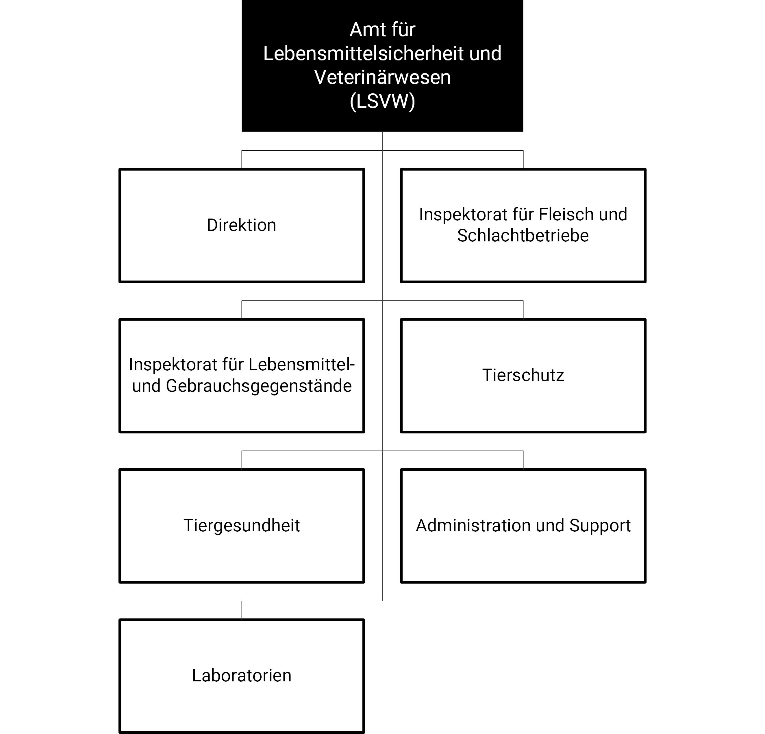 Die Mitarbeiter des LSVW verteilen sich auf fünf Sektionen und sieben Sektoren sowie auf die drei wichtigsten Fleischkontrollstandorte in Courtepin und Estavayer-le-Lac